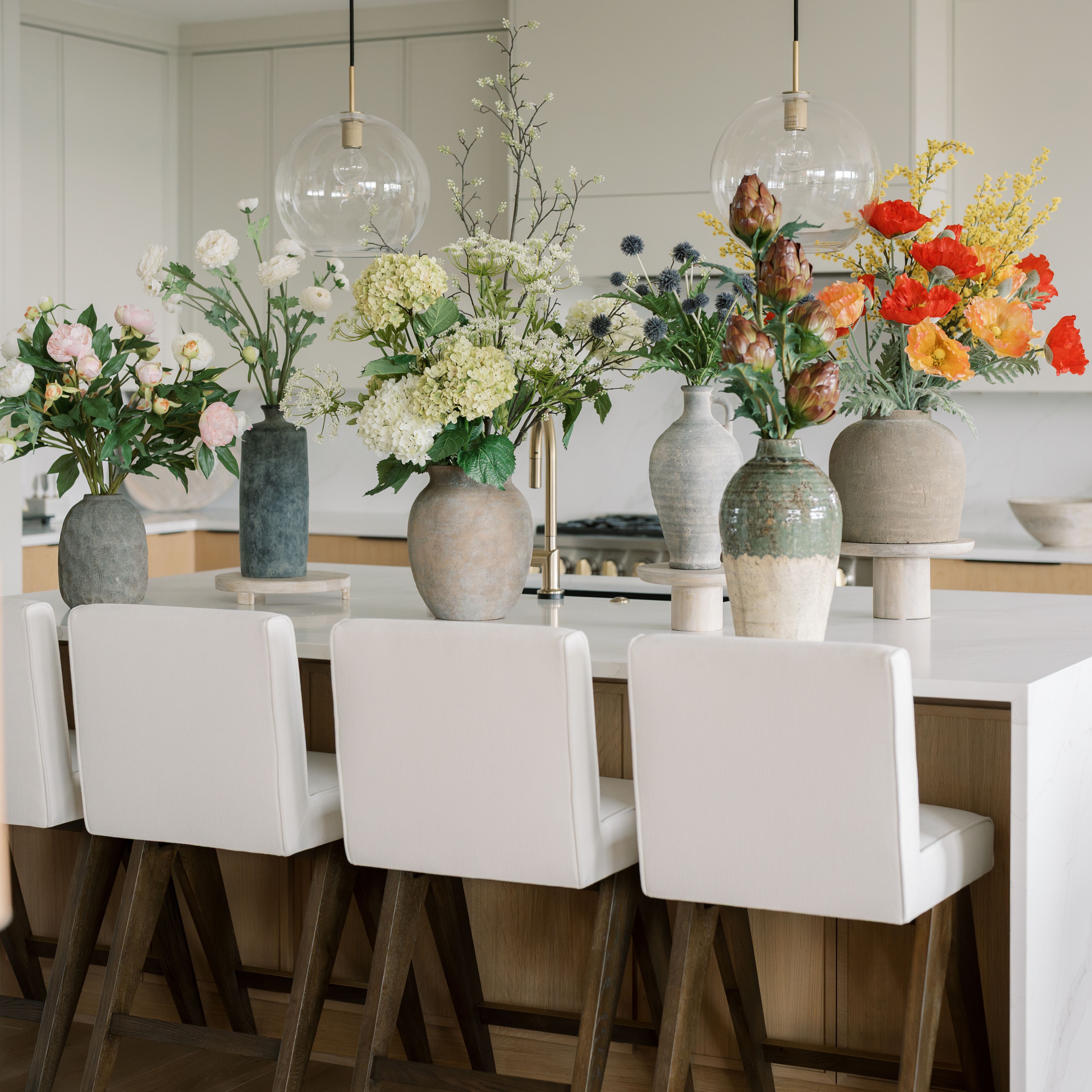 The assortment is composed of architectural faux boxwoods, full bodied hydrangea arrangements, and signature olive trees, complemented by spring to summer wreaths, stem bouquets, and handcrafted stoneware vases. Together, these elements create a cohesive foundation for spaces that feel elevated, intentional, and enduring.